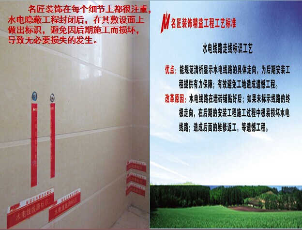 • 測(cè)量水平度,安裝好名匠專用連體底盒,線路作業(yè)完成后及時(shí)封上保護(hù)蓋